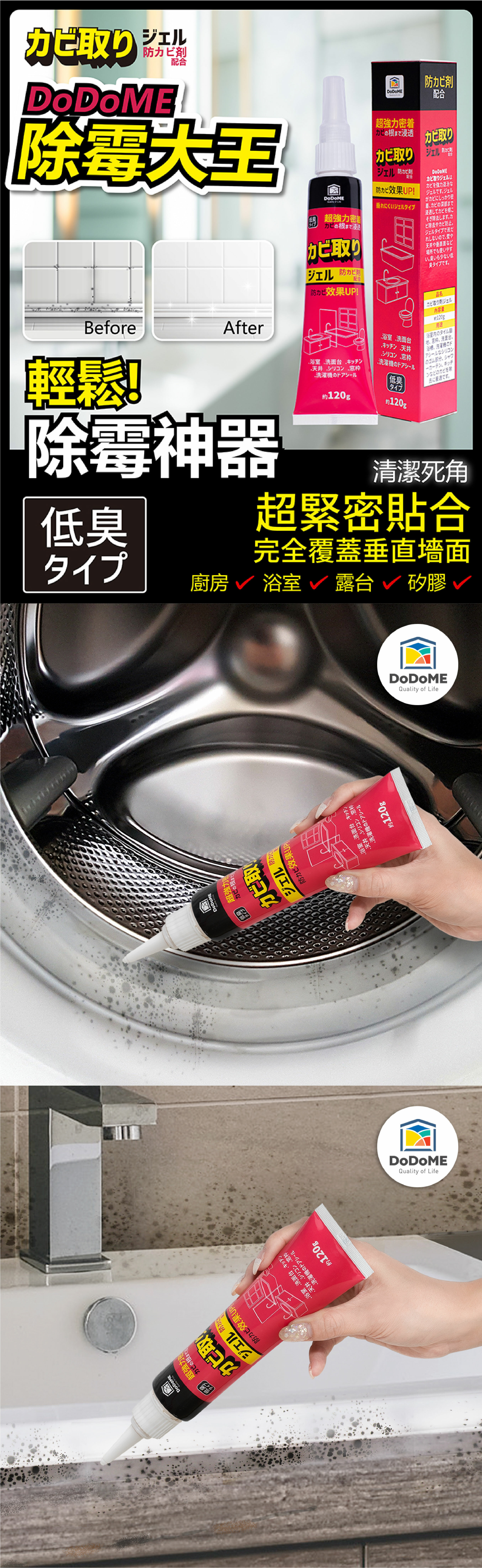 Suitable for tile joints in bathrooms and kitchens, window frames, wash basins, shower curtains, bathtubs, washing machines
