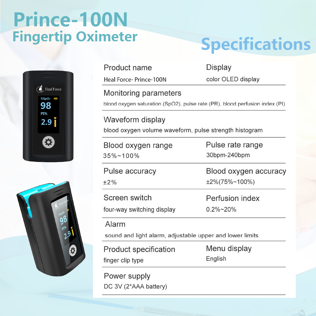 • lmportedchips. Equipped with European imported chips for more accurate capturingof blood oxygen pulse signal