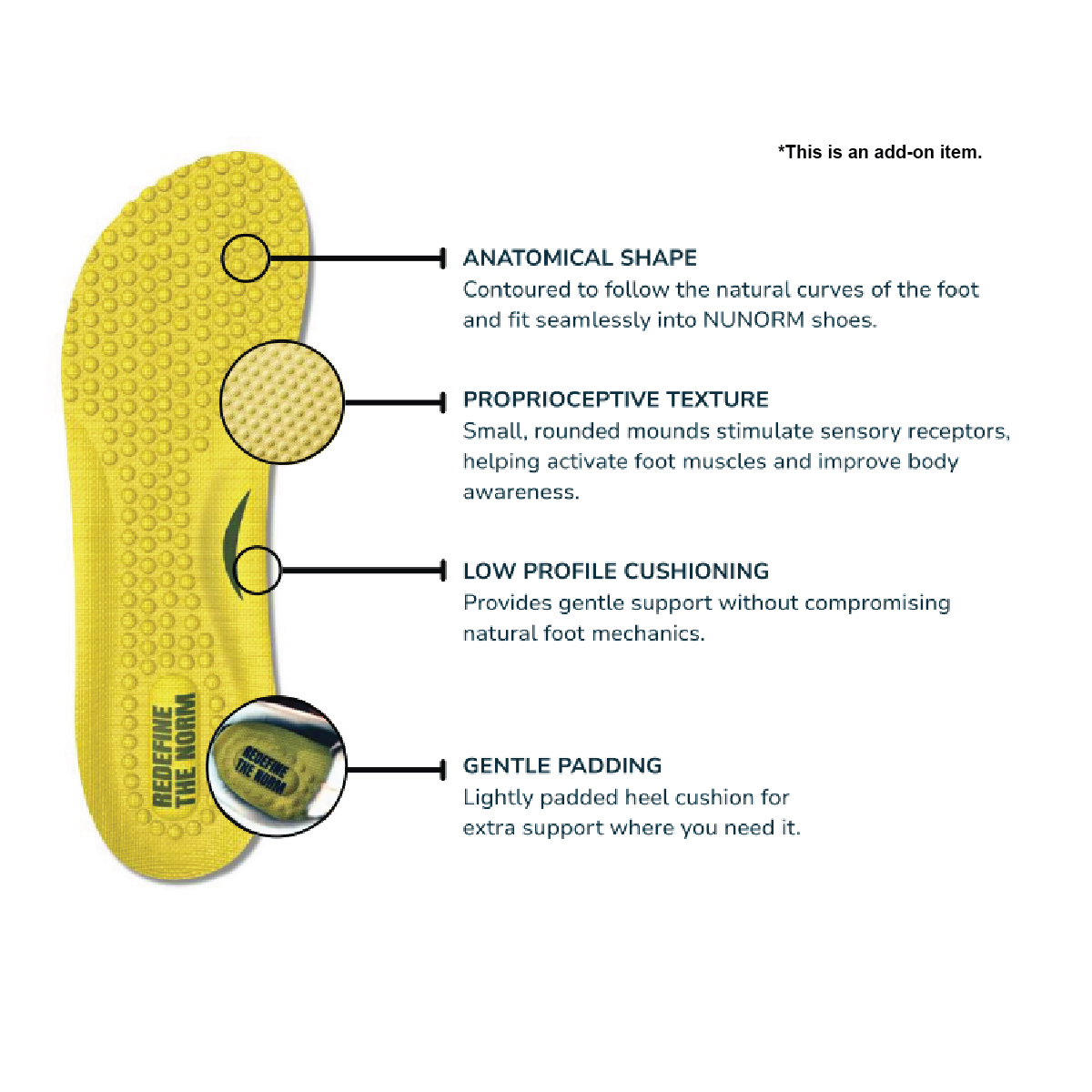 Insole - Minimal cushioning to maintain a barefoot feel while providing necessary support