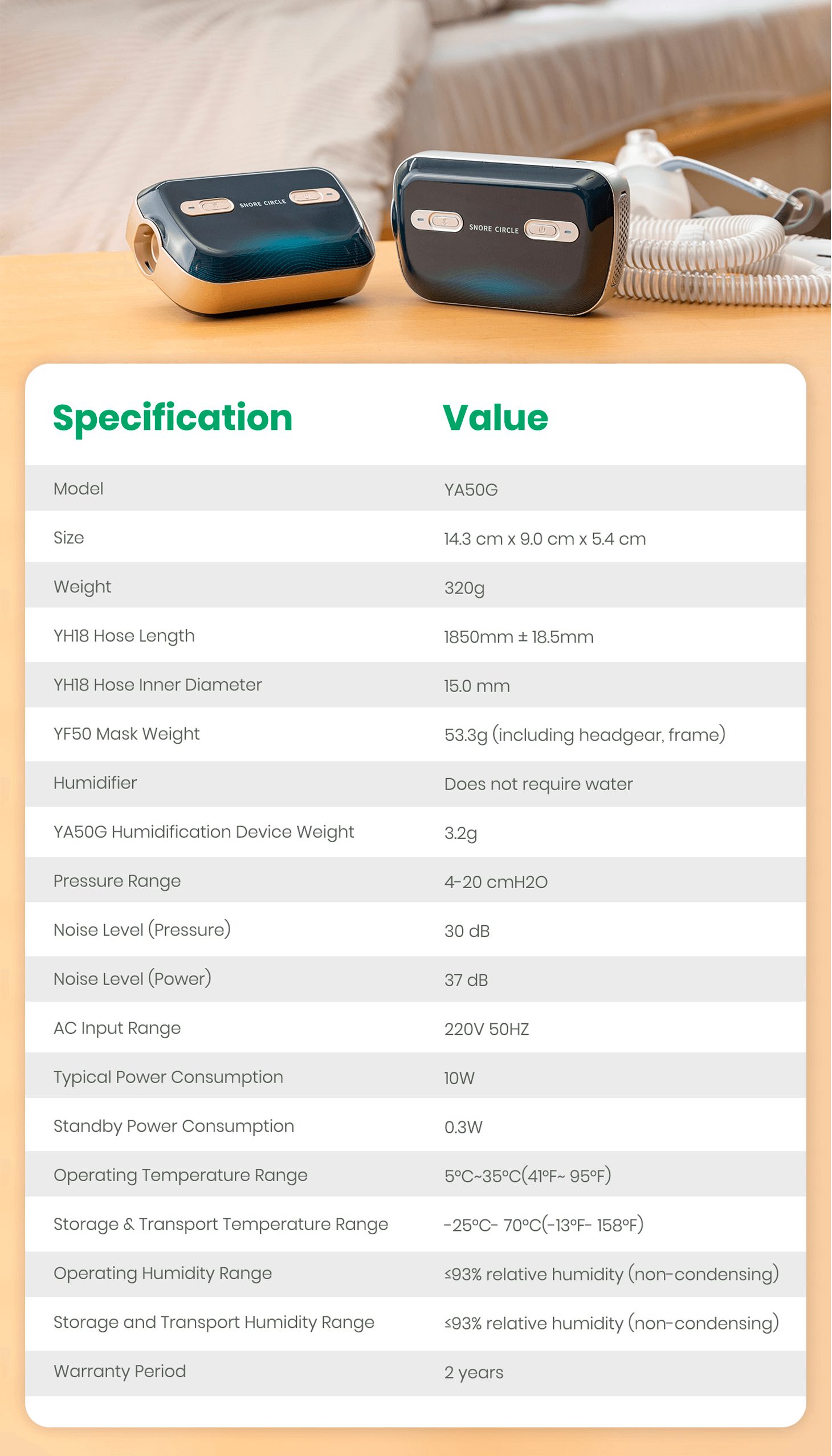 YA50 是一款旨在幫助患有打鼾和睡眠障礙的人的設備。