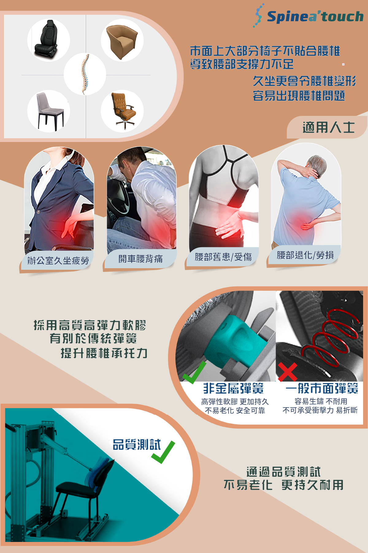 • Fully support the low back and protect the spine so as to maintain physiological curvature,prevent and relieve low back pain