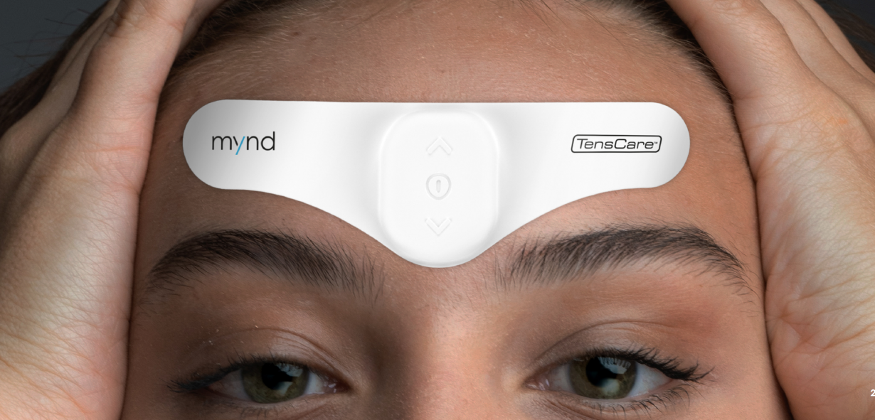 When used on one's forehead, Mynd reduces migraine signals by disrupting signals to the trigeminal nerve by sending a gentle electric current through the gel electrode pad.
