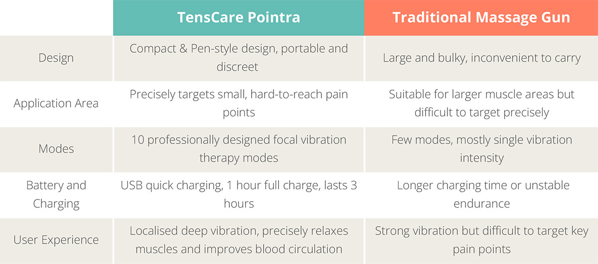 Unlike bulky massage guns, Pointra delivers precise, localised vibrations that relieve tension, ease soreness, and accelerate recovery where you need it most.