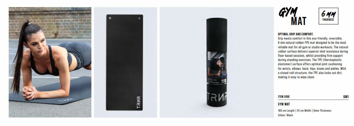 Eco-friendly, 6 mm thick and reversible, the TRNR Gym Mat delivers optimal grip and comfort for all your gym workouts.