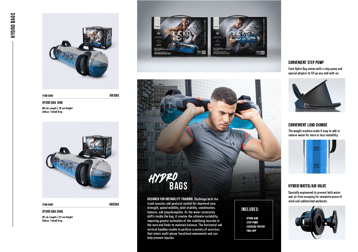 As the water constantly shifts inside the bag, it requires greater activation of the stabilising muscles in the core and limbs to maintain balance.