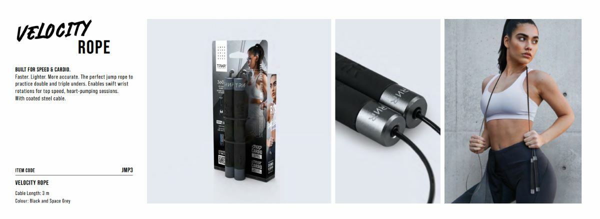 The TRNR Velocity Rope is built for speed and cardio, making it the perfect jump rope to practice double and triple unders.