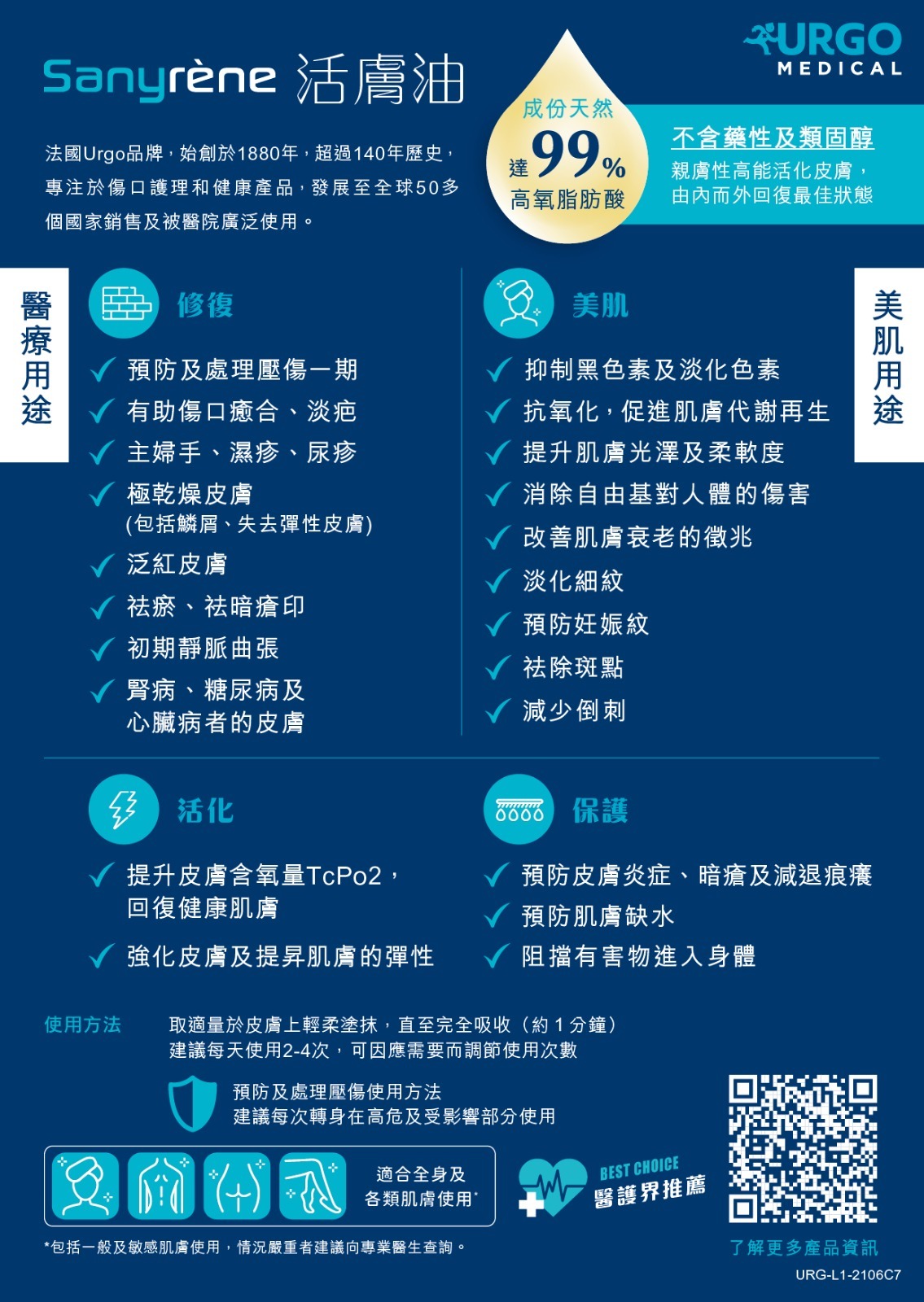 Urgo - French Urgo Sanyrene Revitalizing Oil | Repairs the skin | Prevents primary pressure injuries | Improves skin elasticity and radiance