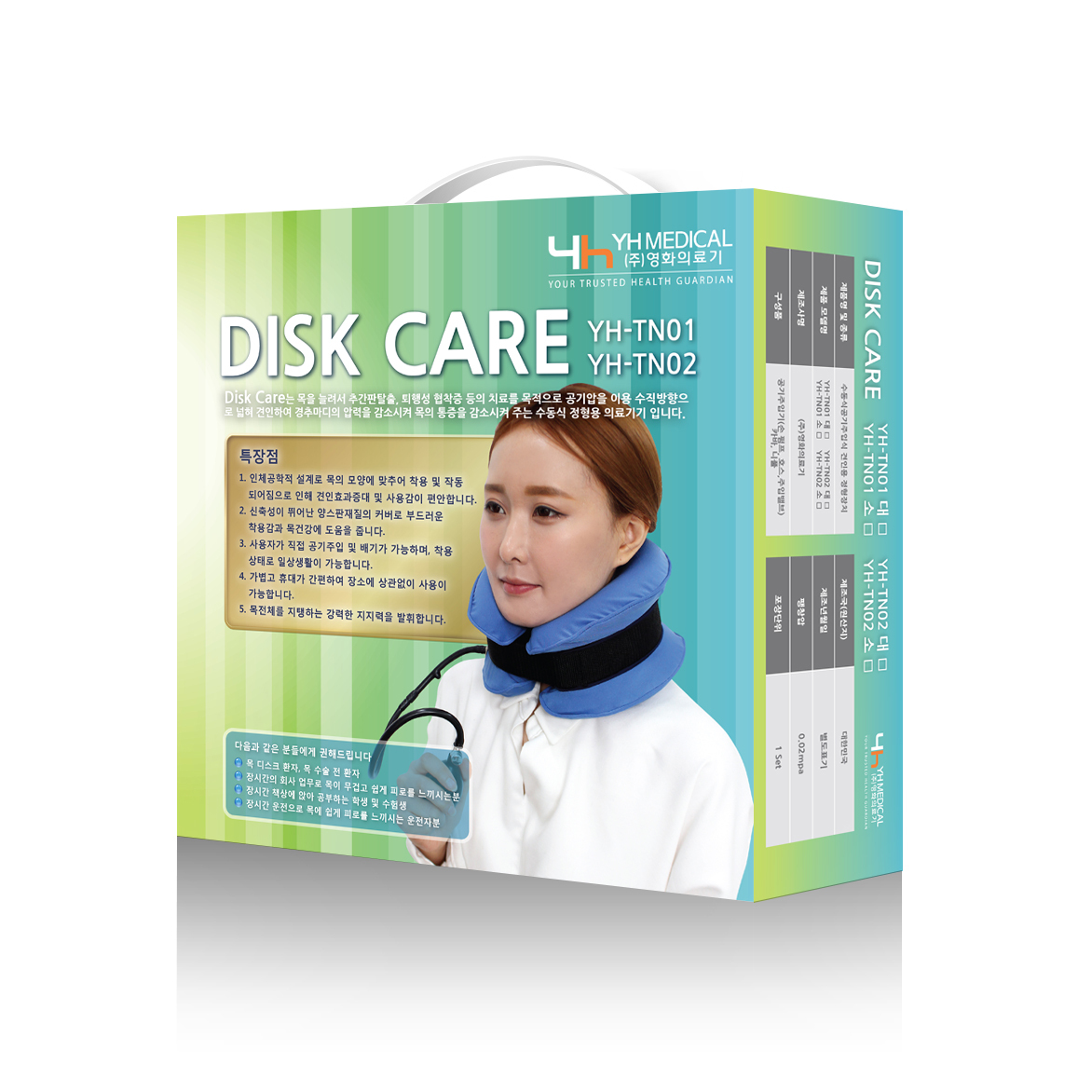 reduces neck pain by reducing the pressure on the cervical spine by expanding and towing air pressure
