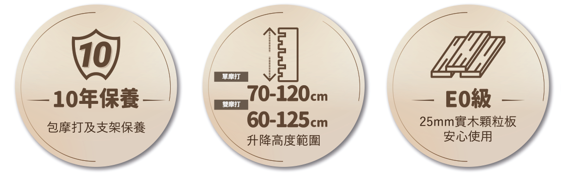 兩段式升降系統能提供最廣的升降範圍:70-120cm