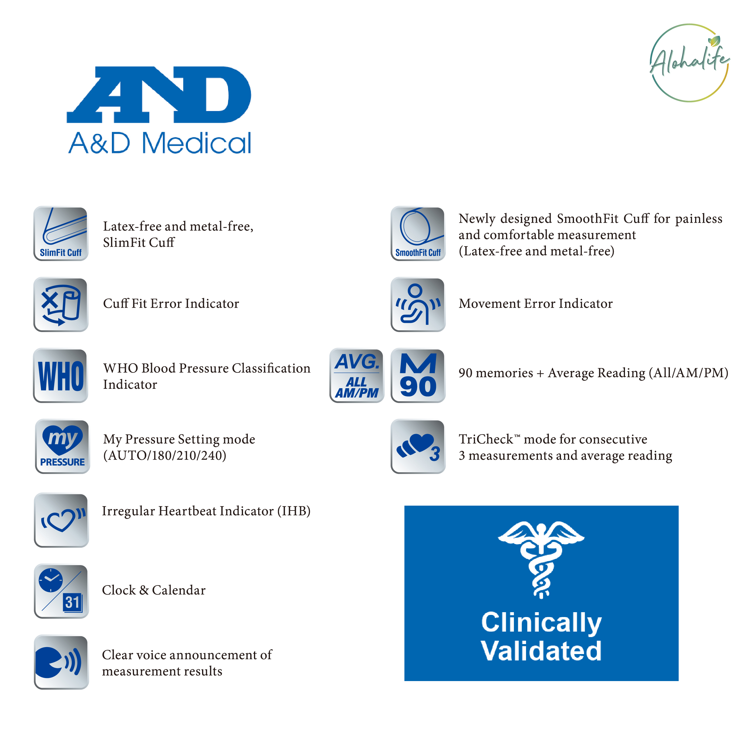 UA1020應用了全新3A技術,包括:手袖設計、加壓及排氣設計。其中,最新的SmoothFit手袖給您無痛、舒適的量度體驗。此外更具備2種模式:My Pressure 及 TriCheck模式供您選擇,給予您無可媲美,獨一無二的量度。