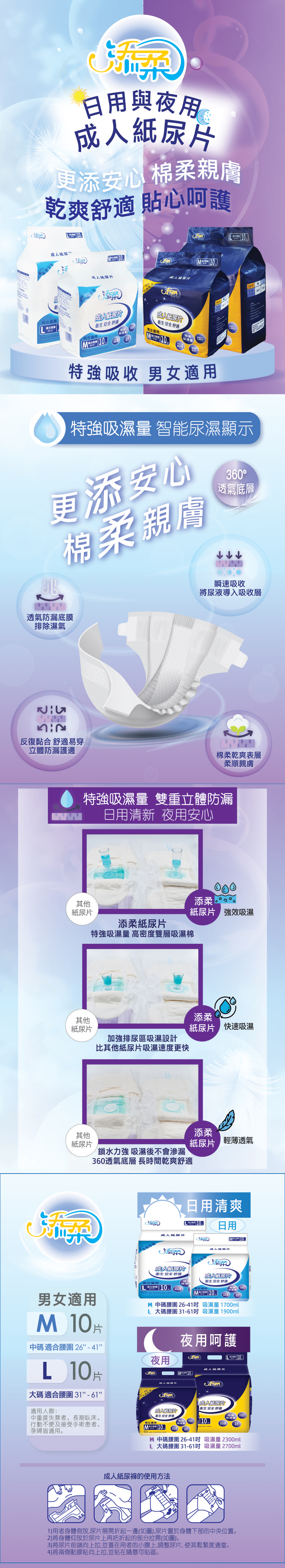 添柔成人尿片日用(每包10片) [澳門醫護品牌 - 逾半安老院舍推崇選用] 成人紙尿片︱成人紙尿布︱長者尿片