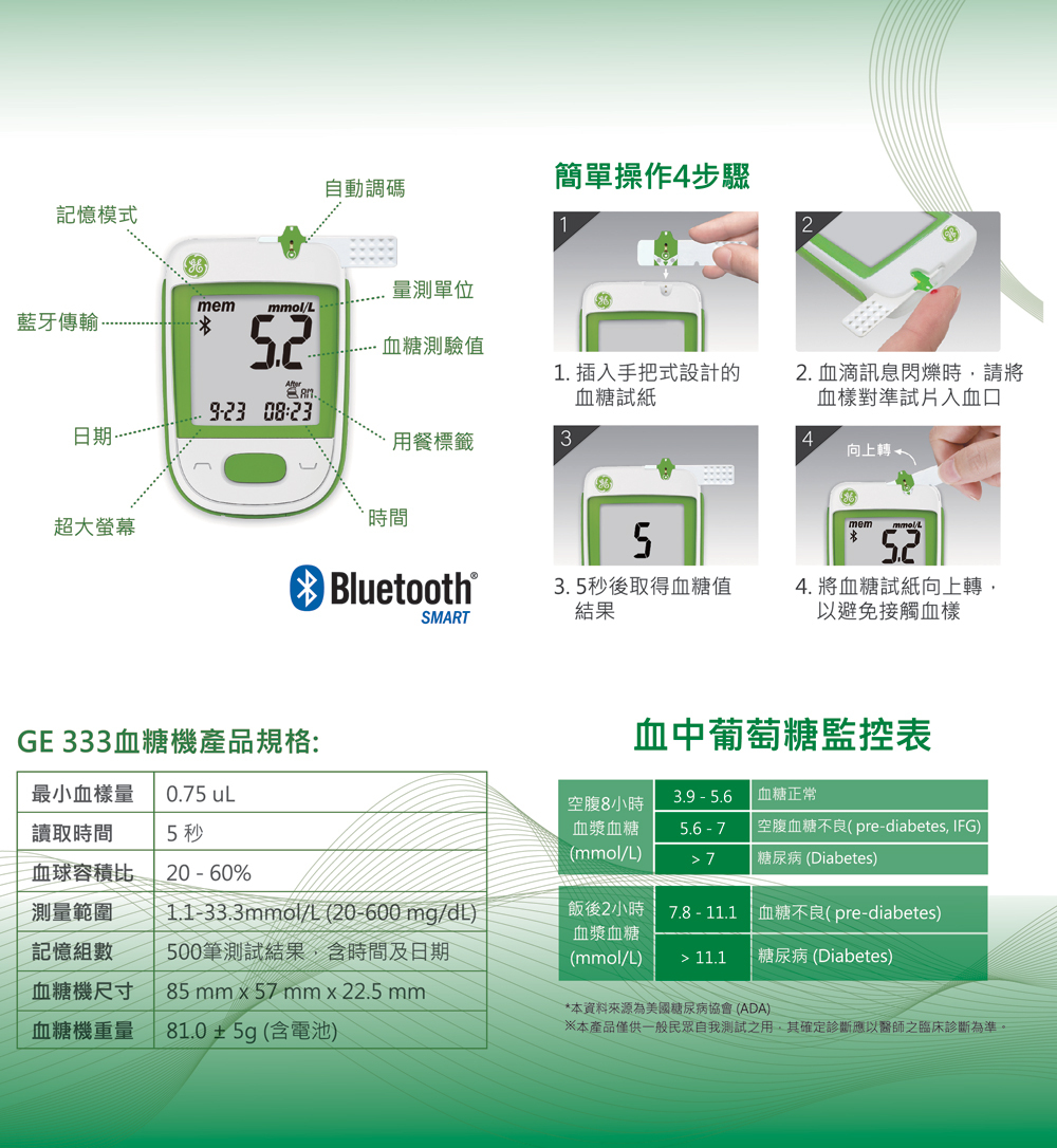 顧客現凡購買GE333血糖機經濟套裝即送血糖試紙(1盒共50紙)及血糖刺針(1盒共50針)
