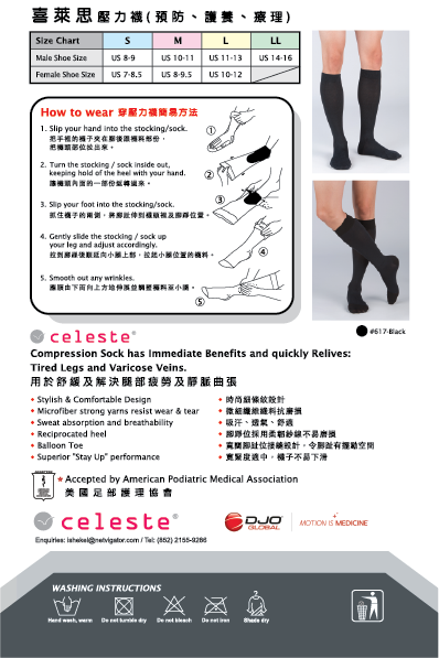 Celeste 美國醫療級漸進式壓力襪(男裝款) 黑色 #617 (15-20mmHg)(S-L碼)