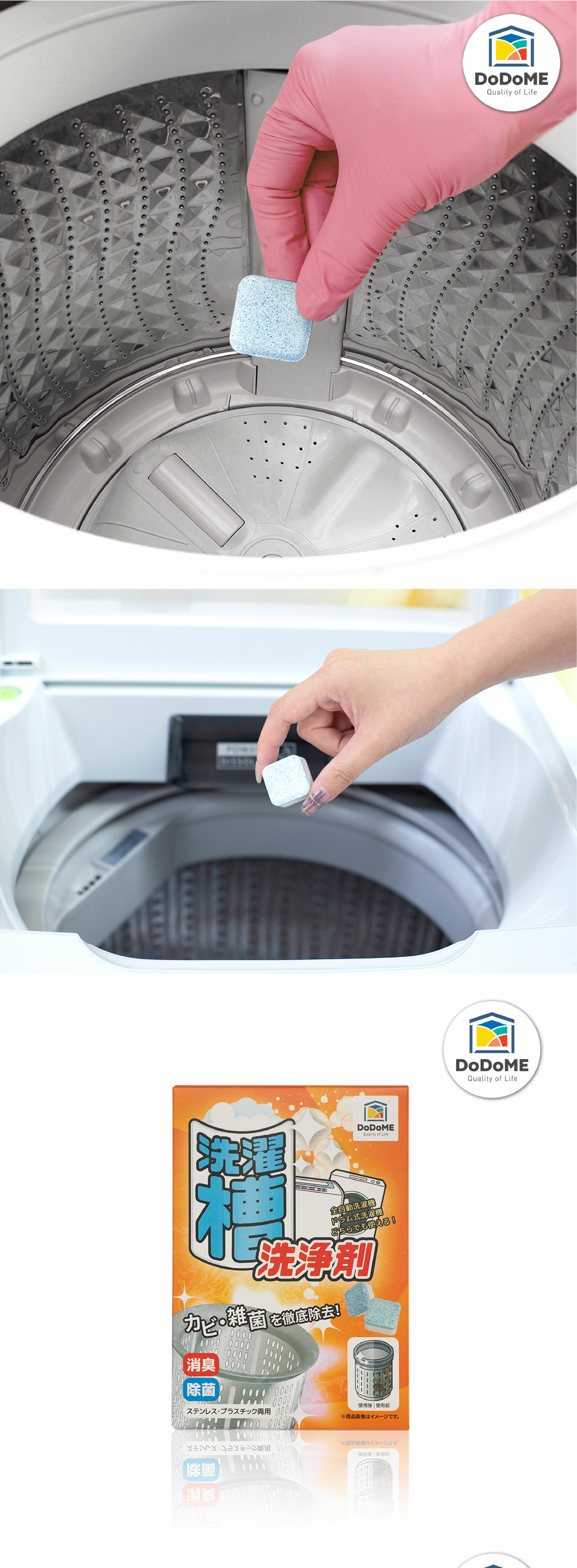 第一次使用時將2粒清潔劑塊放入洗衣機(請勿放入梘粉格)