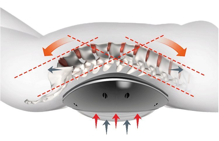 推展腰椎令椎間盤減壓,減輕痛楚。以動態氣壓伸展連續推展腰椎,達到姿勢矯正的功效以振擊按摩舒緩肌肉及促進血液循環以熱能治療消除痛症及酸痛以肌肉電流刺激貼刺激肌肉血液流量,提高肌肉強度,減少肌肉疼痛,以及改善心理復原