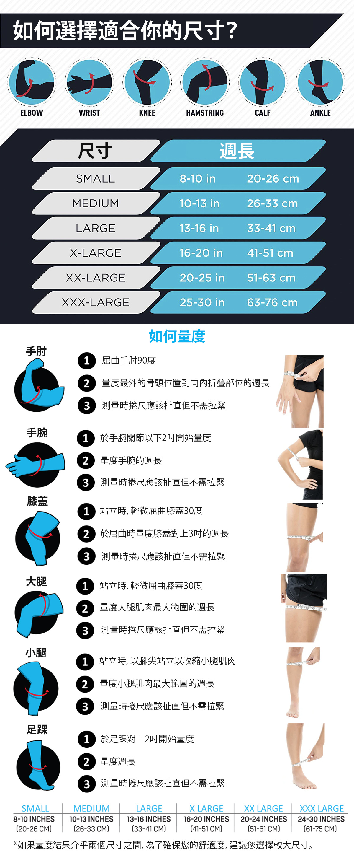 - 多功能性-多種尺寸可供選擇,一種尺寸可用於多個身體部位