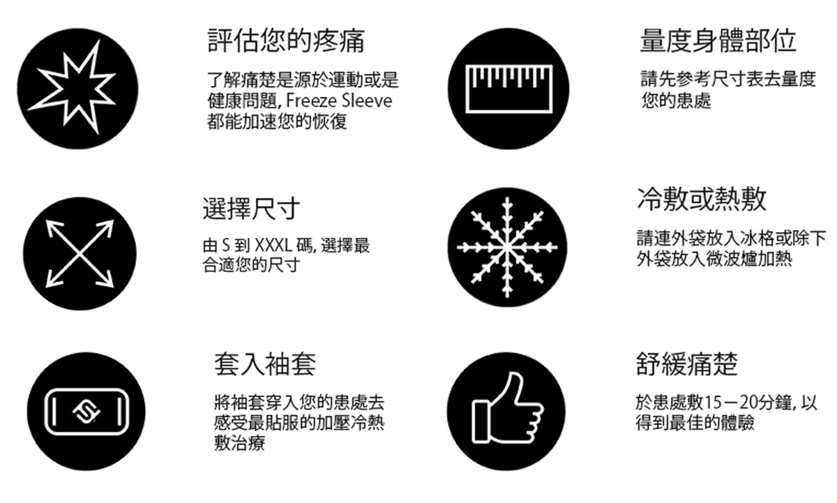 Freeze Sleeve™ 是一款革命性的冷熱敷凝膠壓縮袖套,有效緩解肌肉和關節疼痛及促進受損部位修復,