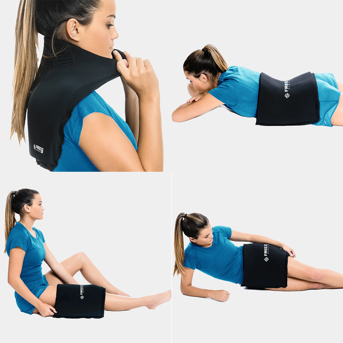 Freeze sleeve 另設12寸 X 17寸超大號的冷熱敷墊,可全面覆蓋身體各組大肌肉群,例如背部、肩膀、臀部、膝蓋等,幫助緩解關節和肌肉不適。