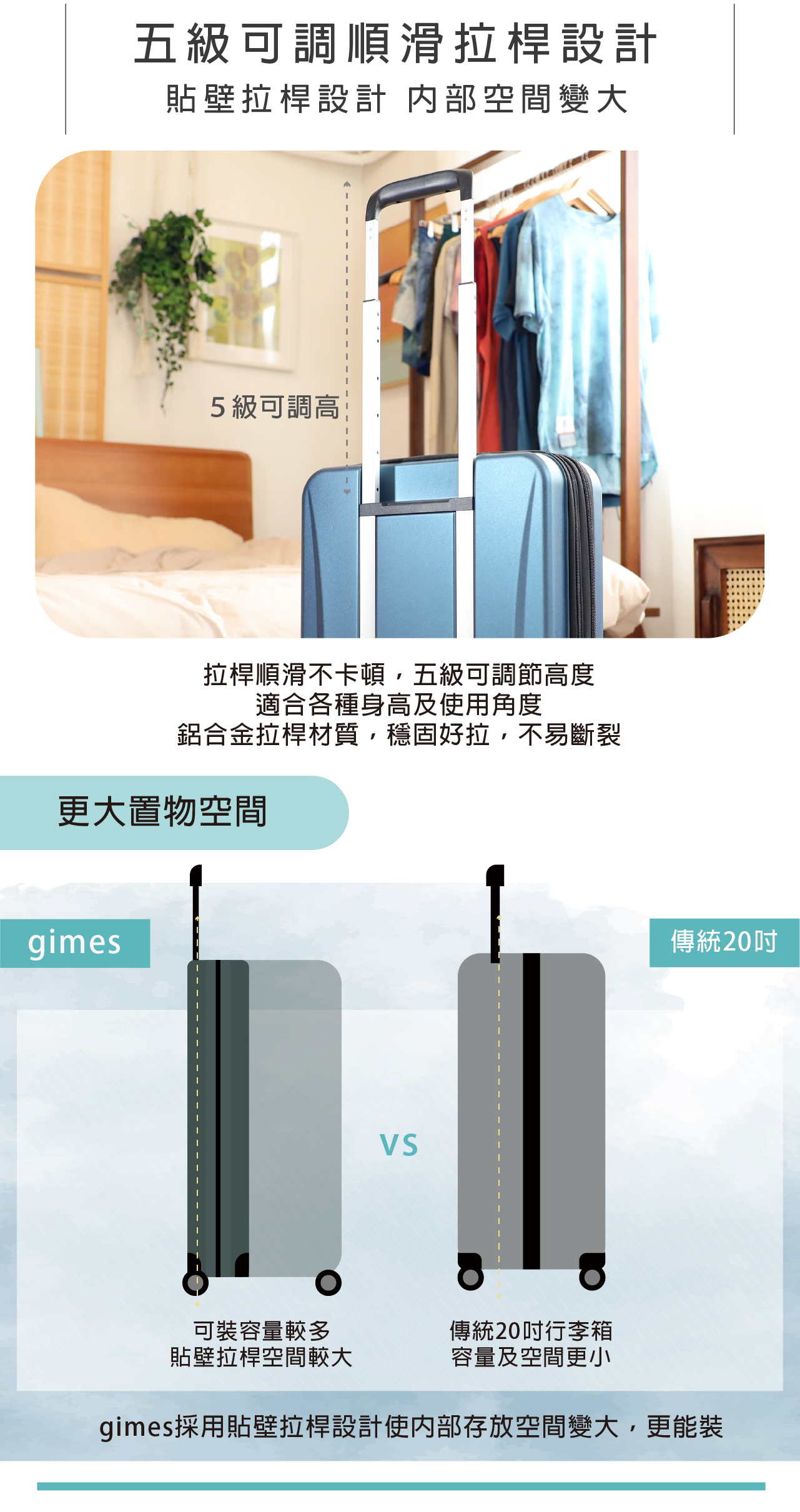 - 5級可調式拉桿|順暢拉桿不卡,四輪萬向轉動靜音滑順