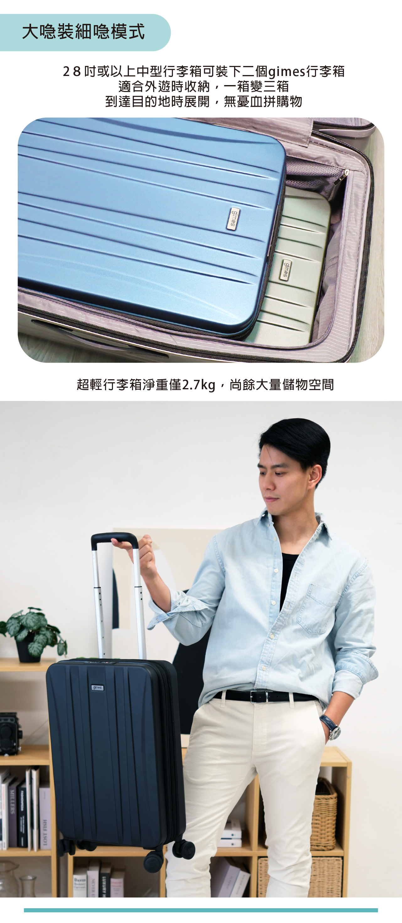 - 一變三|28吋以上行李箱可裝下兩個gimes,無憂血拼購物