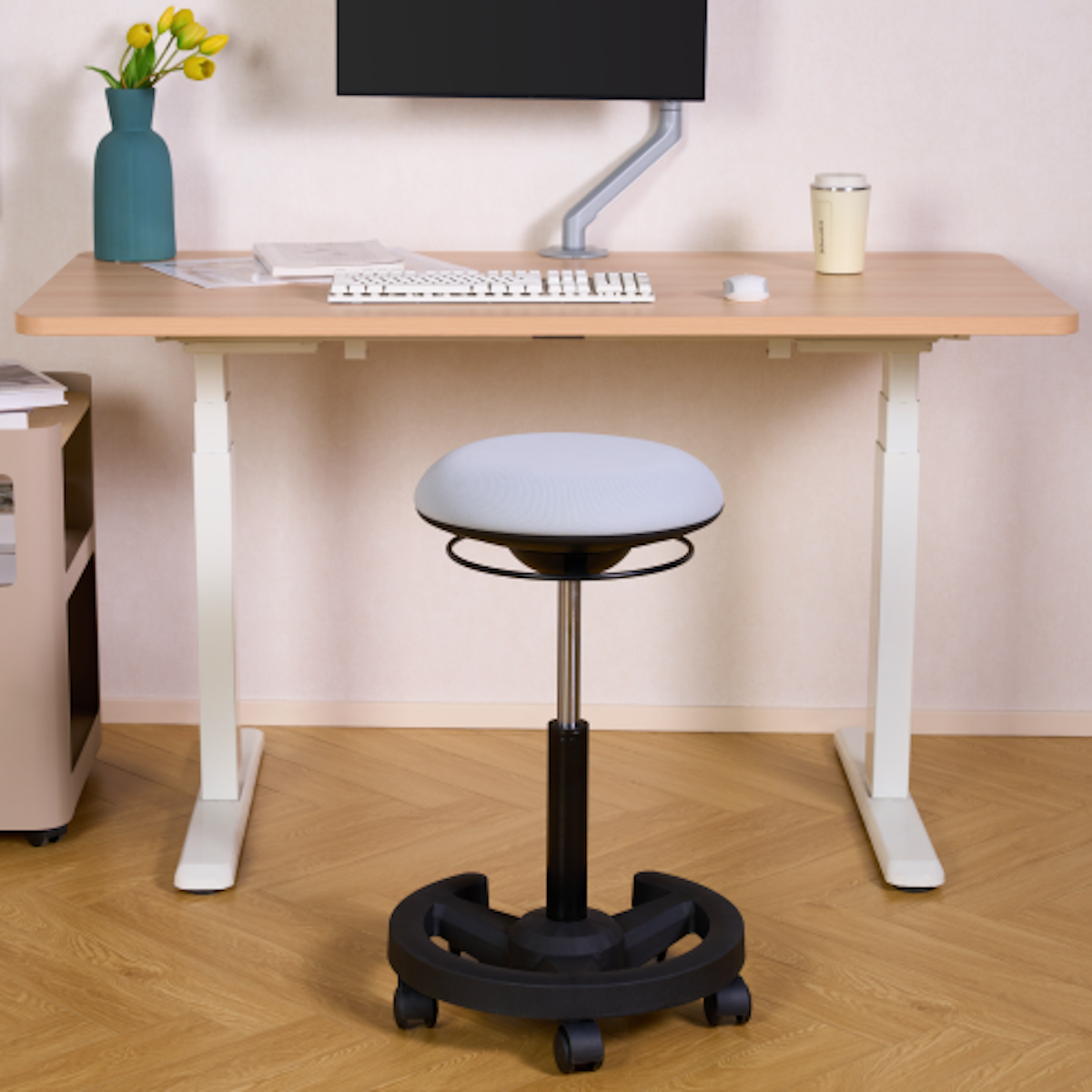 獨特的「搖擺動態坐姿」(wobble stool)設計,能促進核心肌群微運動,改善久坐姿勢並提升血液循環。
