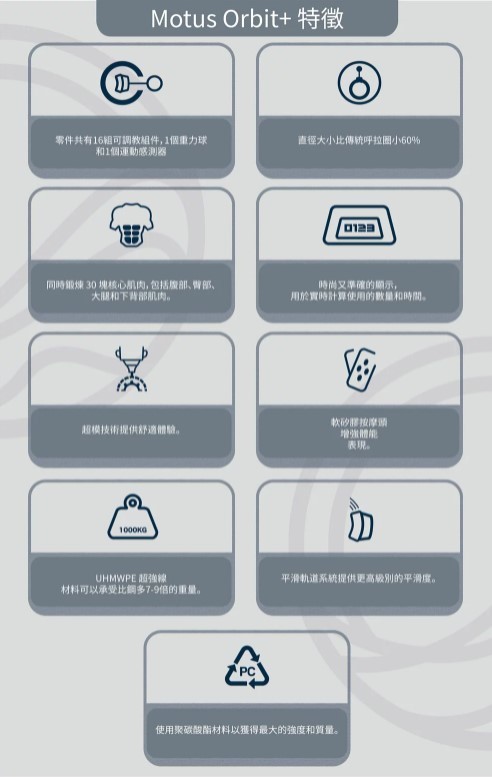 Motus Orbit+ 將顛覆你對運動的感受!一個不會掉的呼拉圈,加上可調節式設計,任何腰圍人士都適用。簡單易用,配合上磁力計算器令你精準記錄每一次的運動圈數、時間及卡路里消耗,達成每日指標。