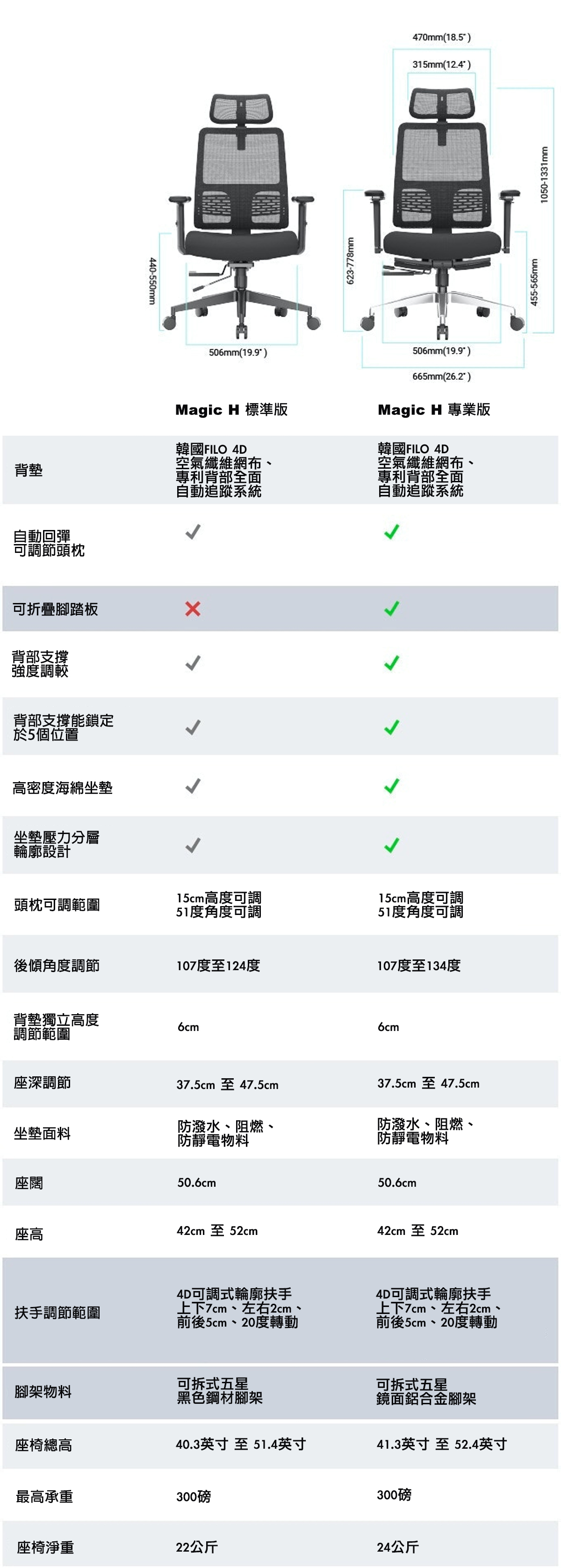 厭倦了工作時血液循環變差、腰背痛以及雙腳腫脹不適嗎?Magic H 專業版本獨有的可折疊腳踏板可以拯救您!
