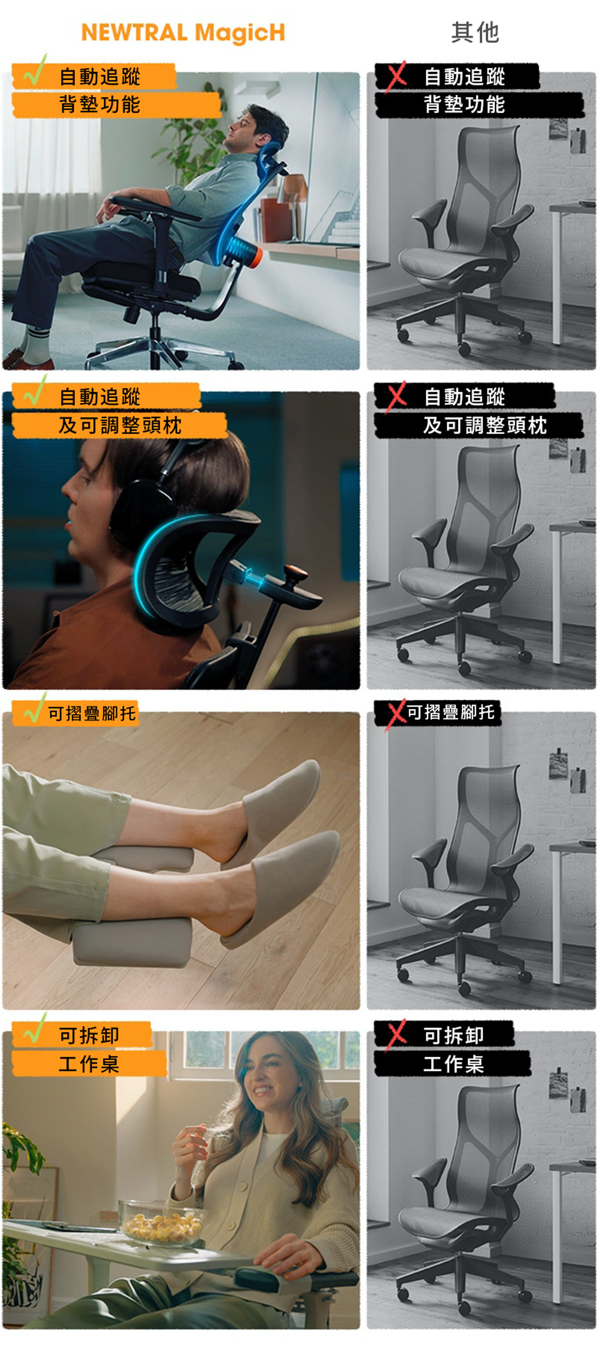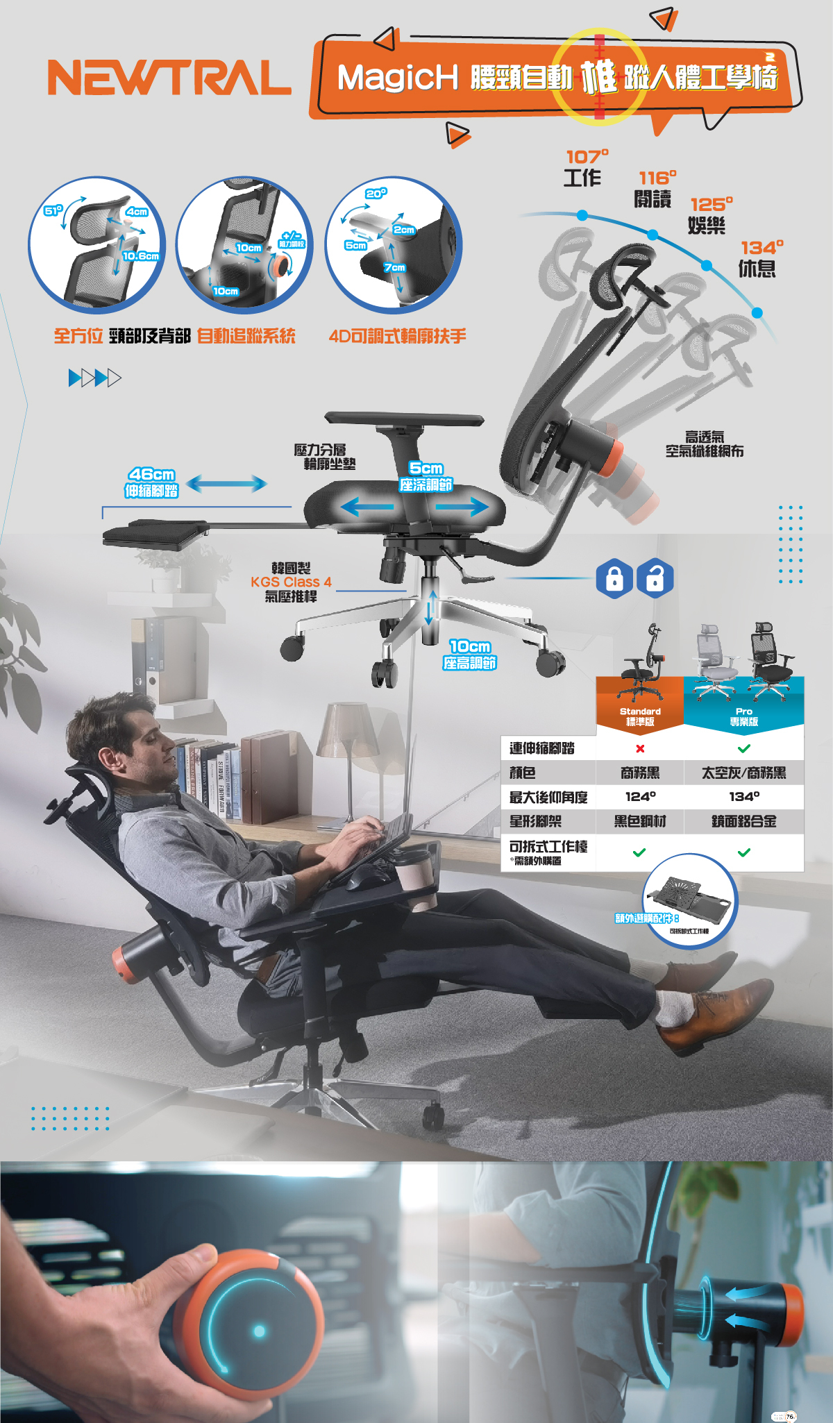 源於初代腰部自動追蹤人體工學椅的口碑,Newtral 正式推出Magic H 系列。