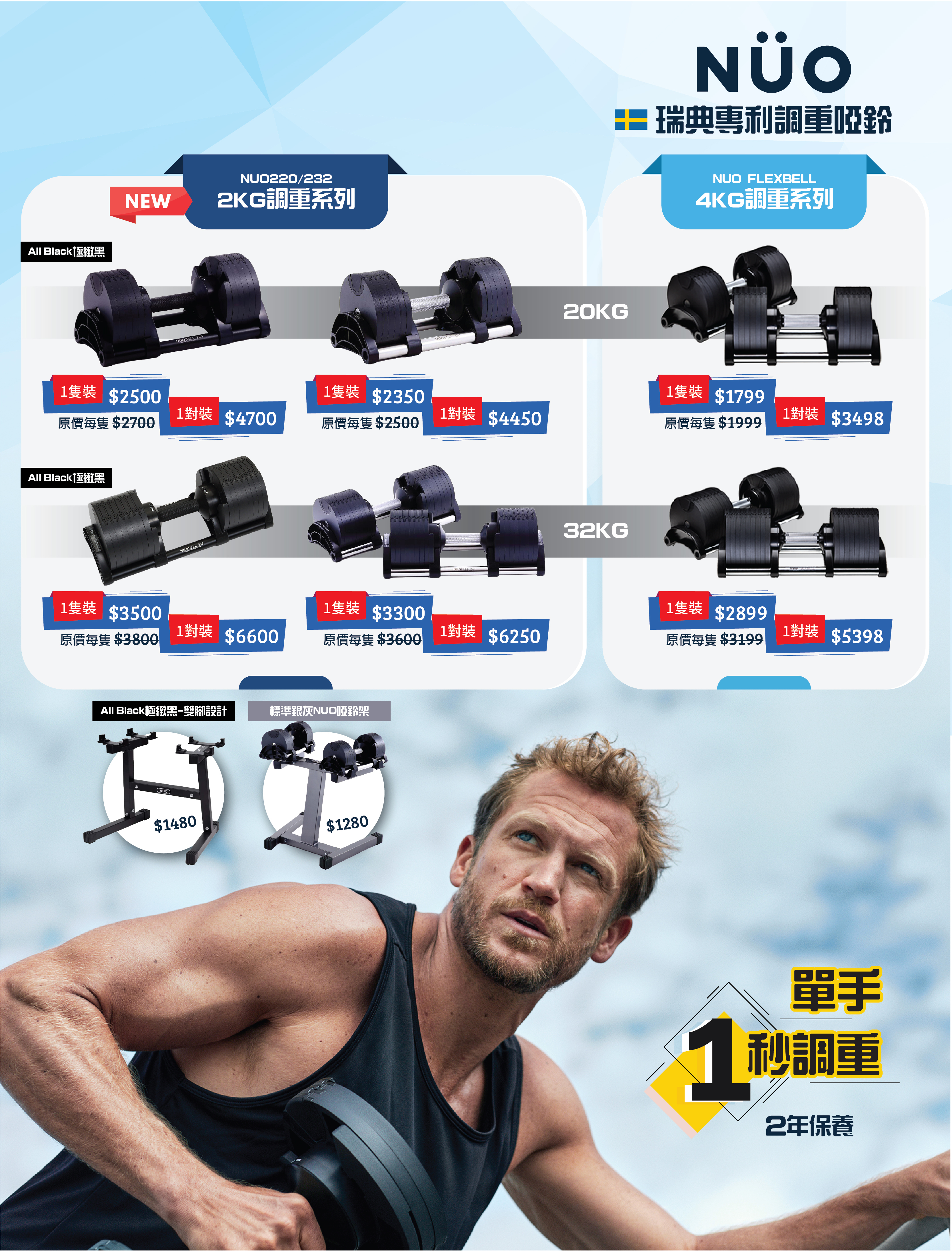 NÜOBELL 新一代瑞典專利可調重啞鈴 (20kg/32kg套裝) NUO220/NUO232
