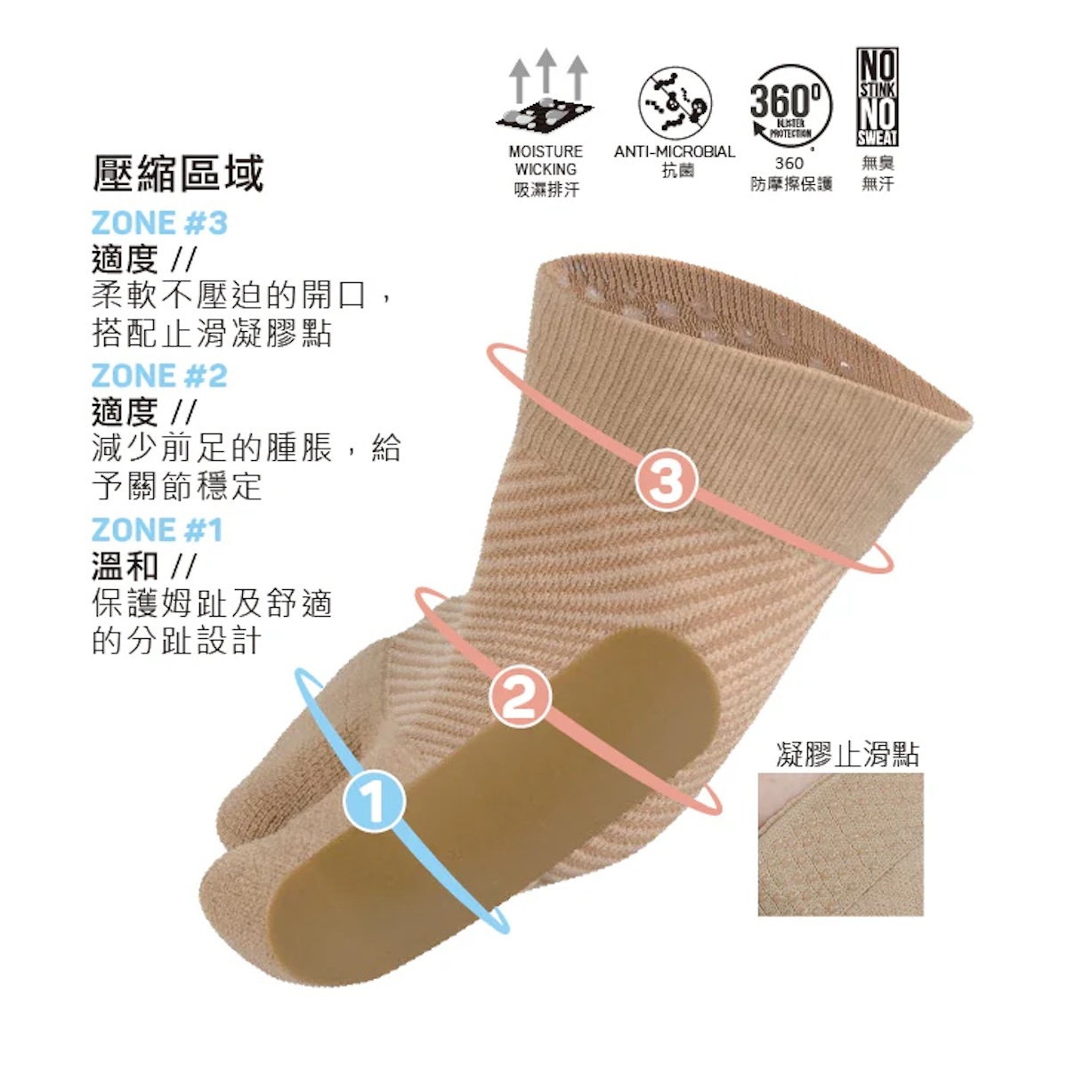 適用於𧿹趾關節突出及分趾的功能,使用柔軟的腳趾支撐板,調整𧿹趾突出處角度,並幫助分離腳趾,以進行逐步矯正,減少因𧿹趾突出而造成的不適感。