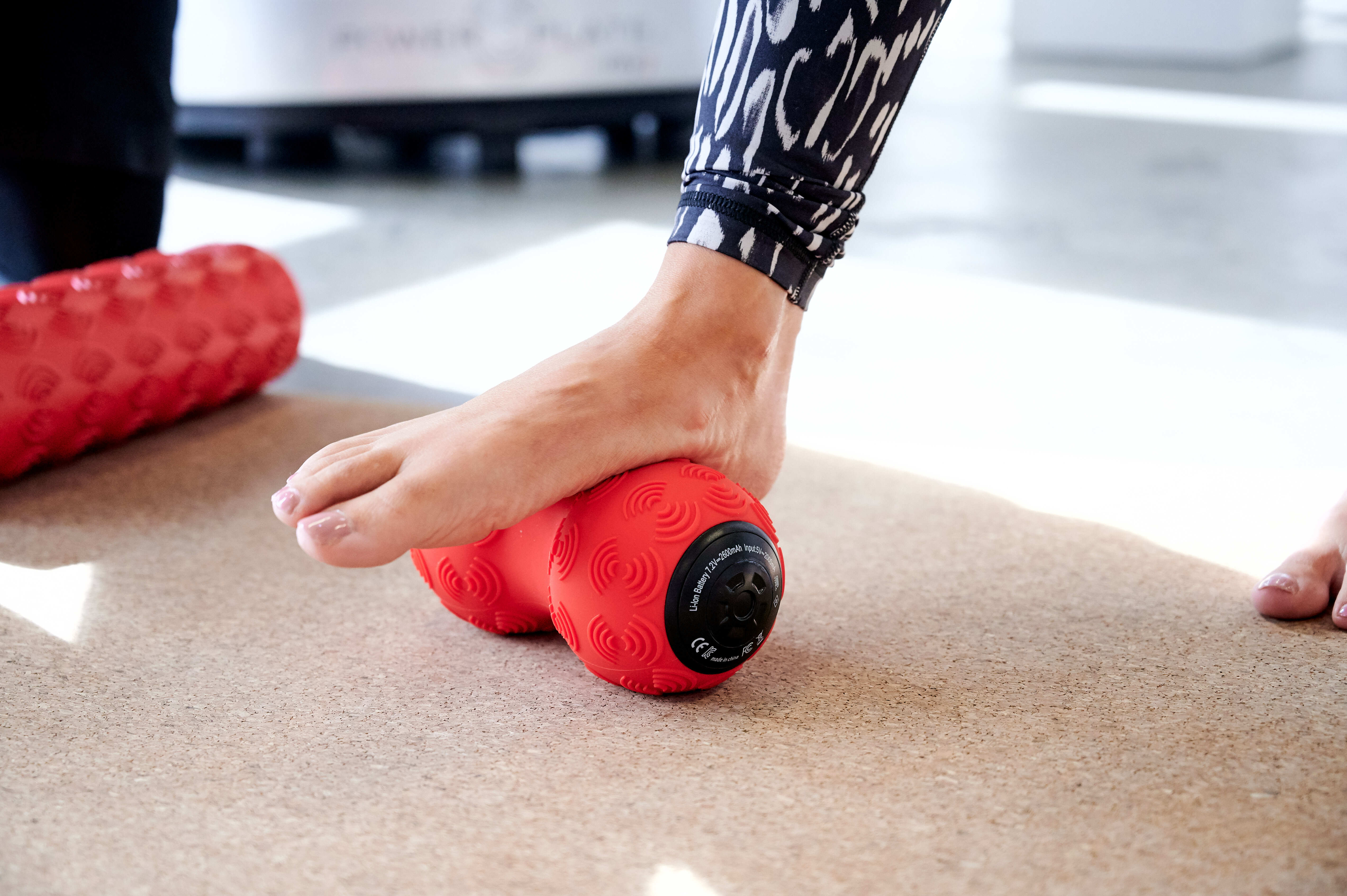 Powerplate®DualSphere™ 非常適合進行集中式的按摩。 DualSphere 具有獨特的形狀和紋理設計,