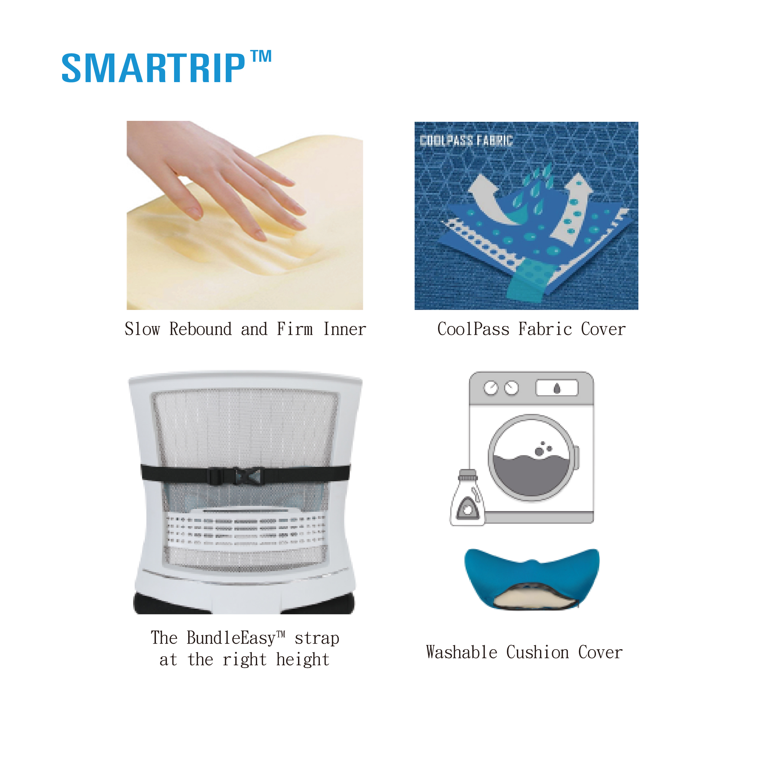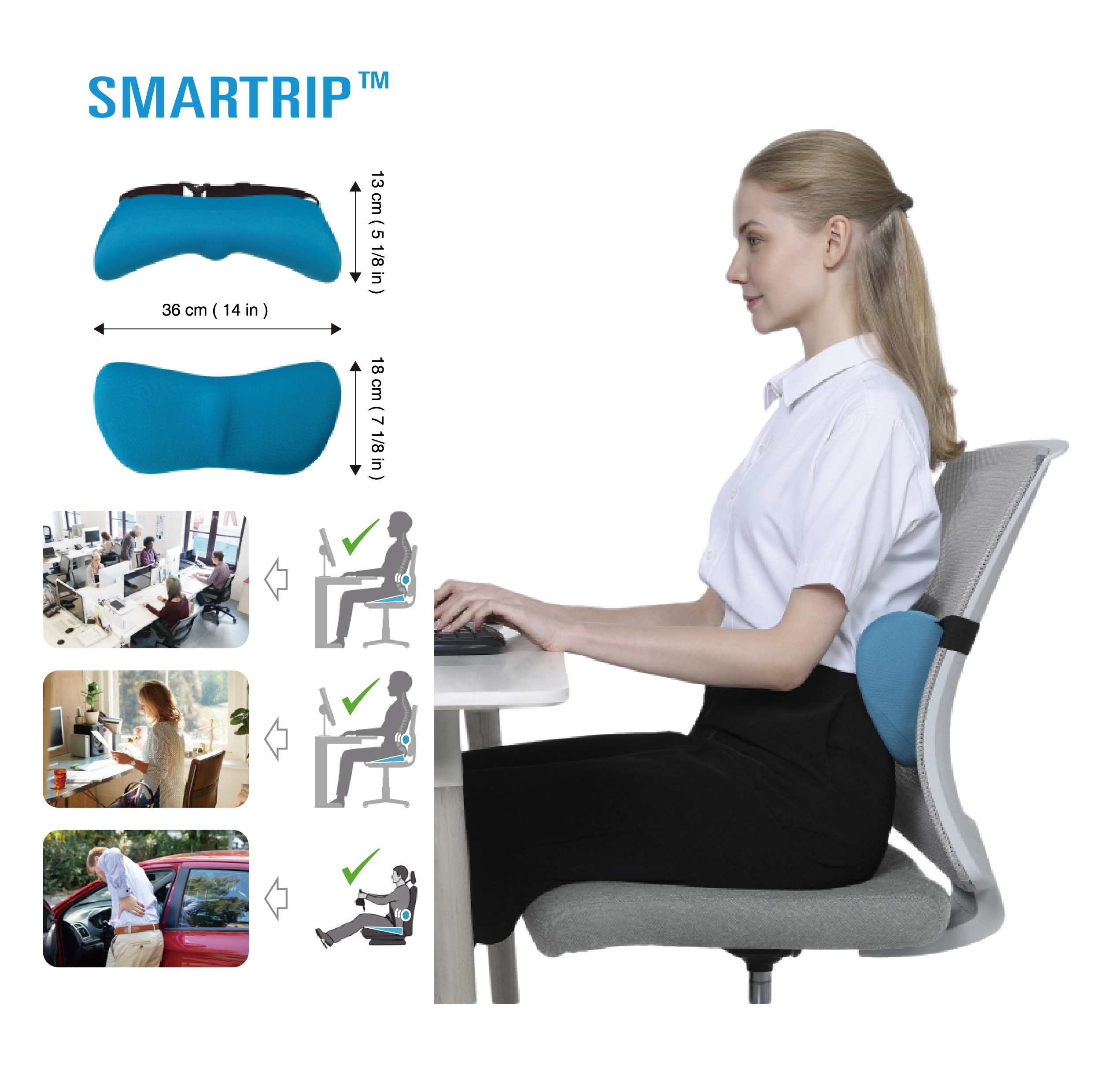 SMARTRIP的工程師發現辦公椅通常會有坐墊下凹、椅背後傾的問題,容易令用家形成不良坐姿,同時長期壓迫脊椎,導致上班一族面臨頸椎/腰椎/骶骨等處慢性損傷,SMARTRIP針對工作時的坐姿設計腰墊及坐墊,務求用健康坐姿消除久坐的困擾。