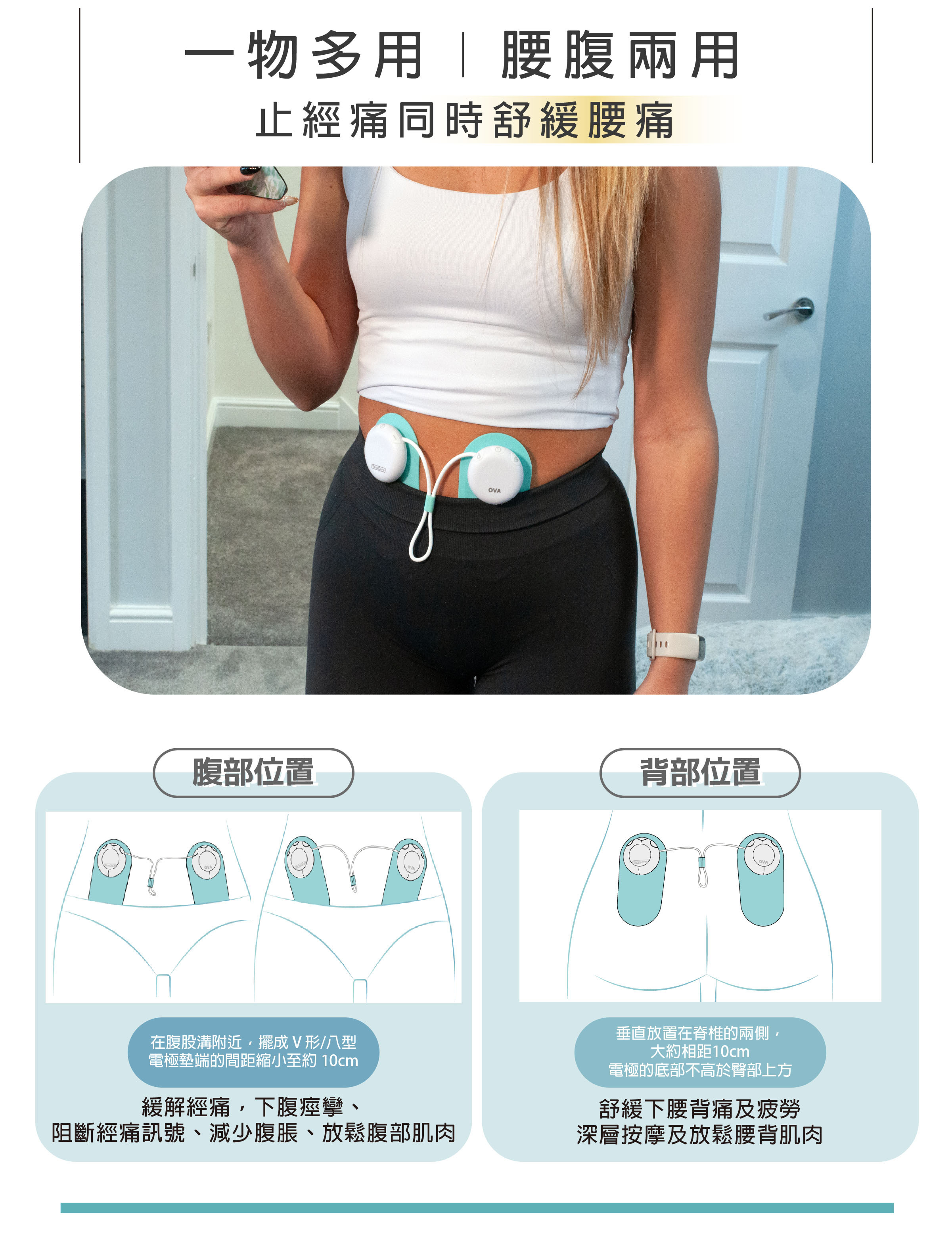 ‧ 採用先進的 TENS 技術,可安全、經臨床證明、無需藥物地緩解原發性和繼發性經痛