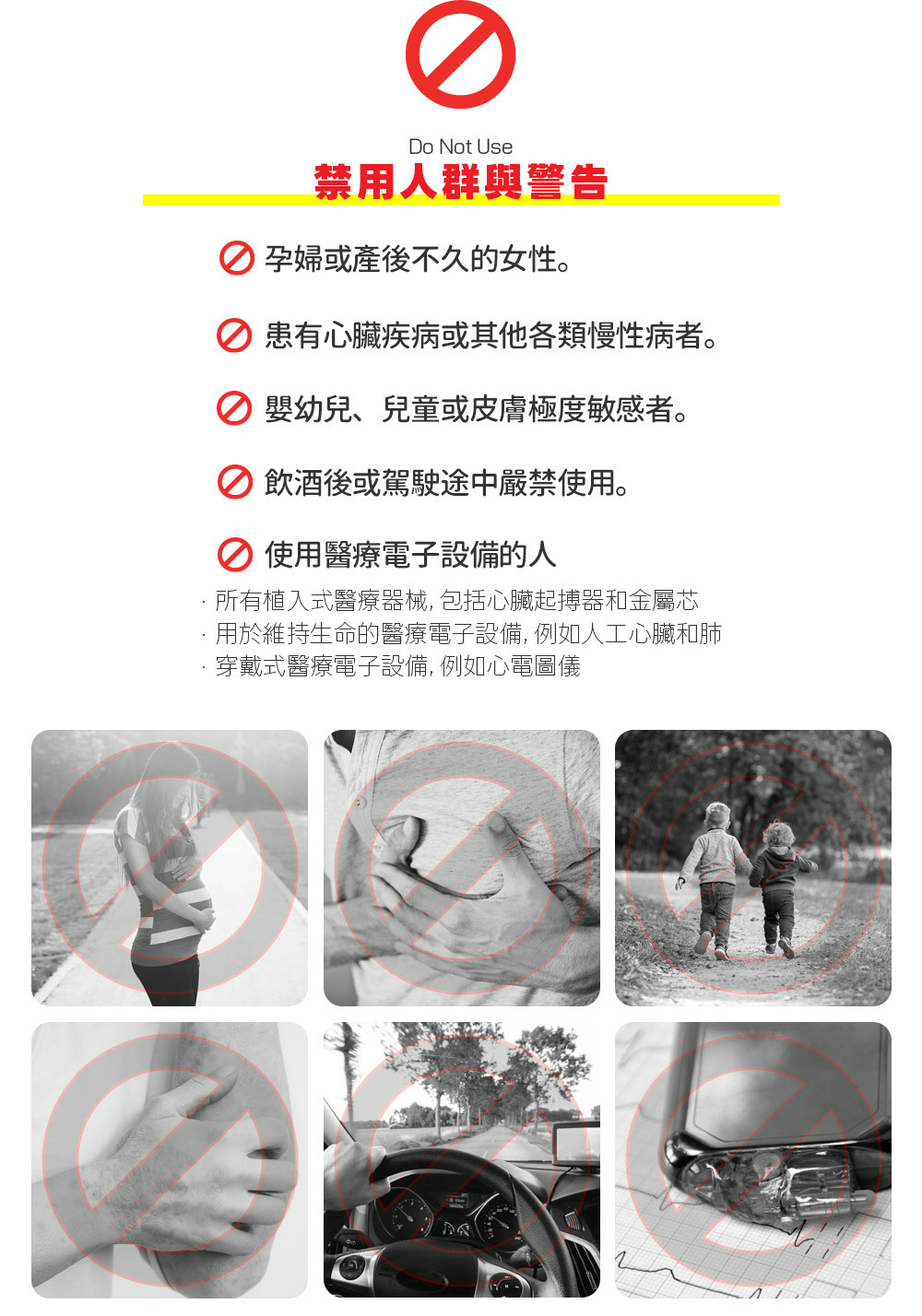 心臟相關疾病患者、孕婦、以及處於酒精或藥物影響狀態者。