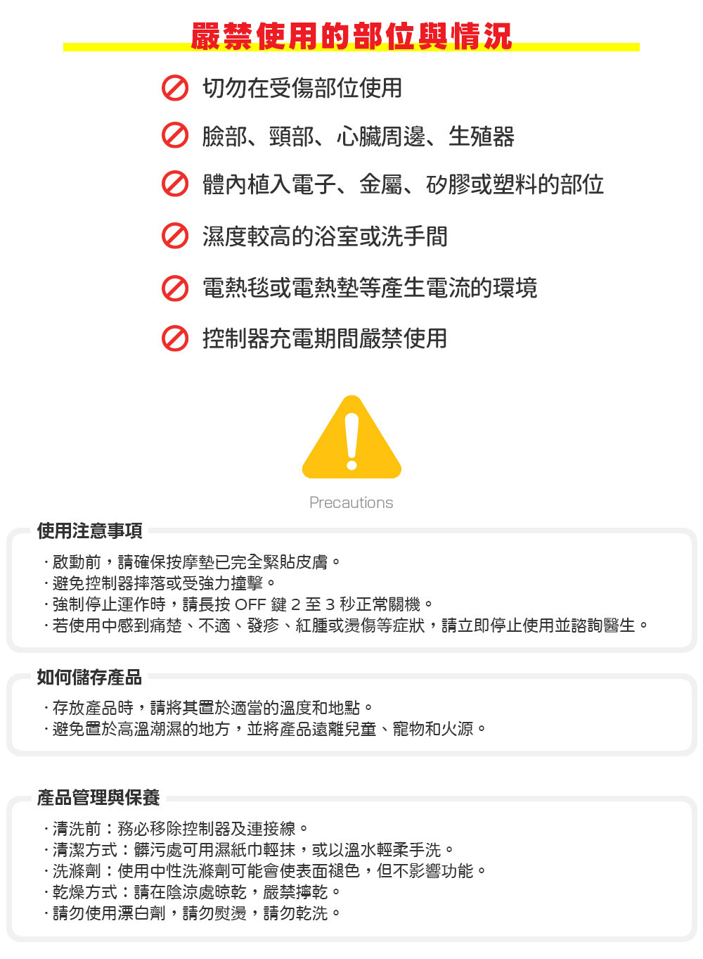 請避免在以下部位使用本產品: