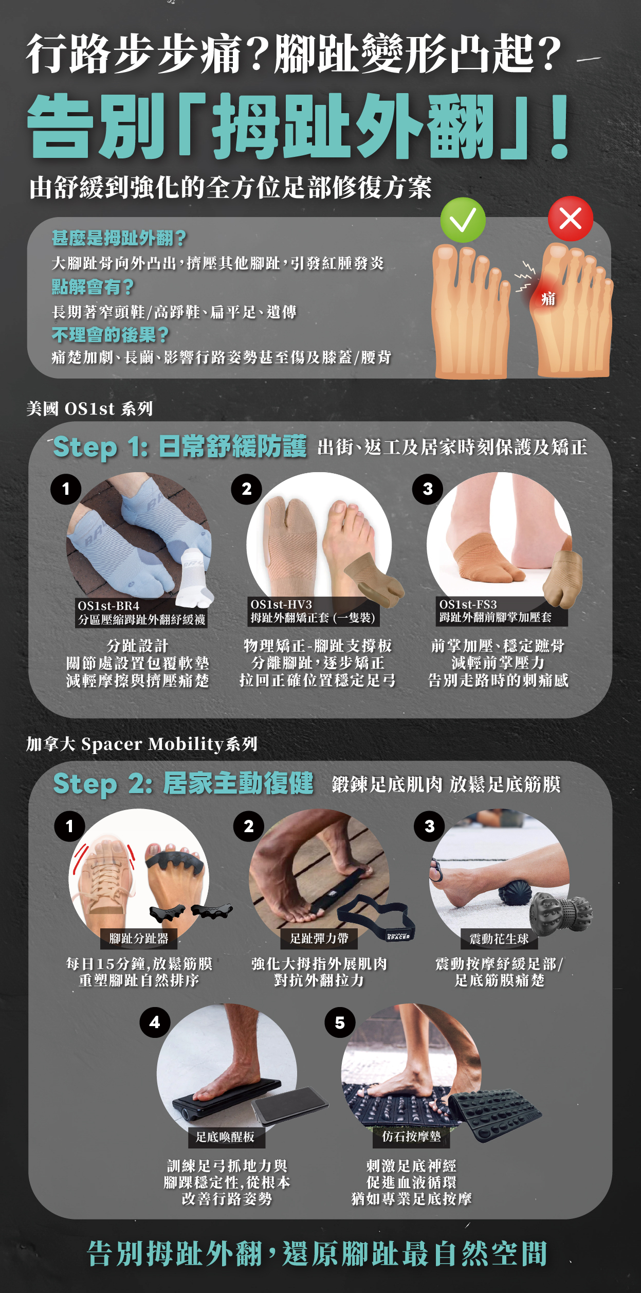 Spacer Mobility 足踝穩定訓練板結合平衡訓練、足部肌力強化與復原按摩三大功能。